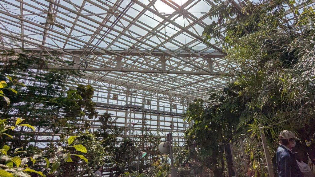 さくら園のにぎわいから少し離れ、園内にある大温室にも立ち寄りました。この大温室は、1984年に完成し、2016年にリニューアルした施設で、熱帯・亜熱帯の植物が約650種類も展示されています。