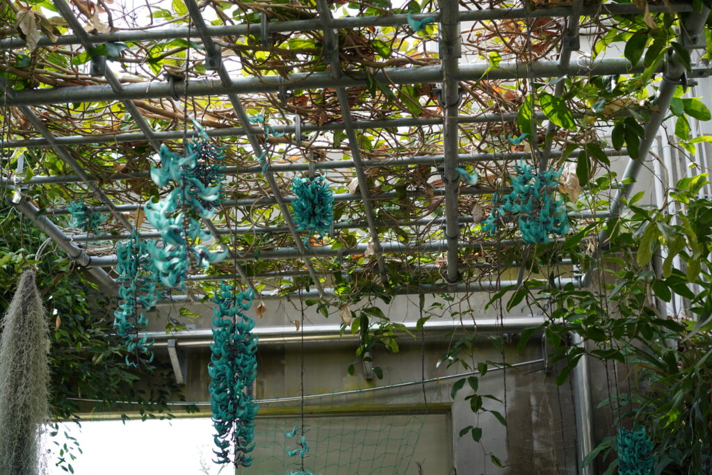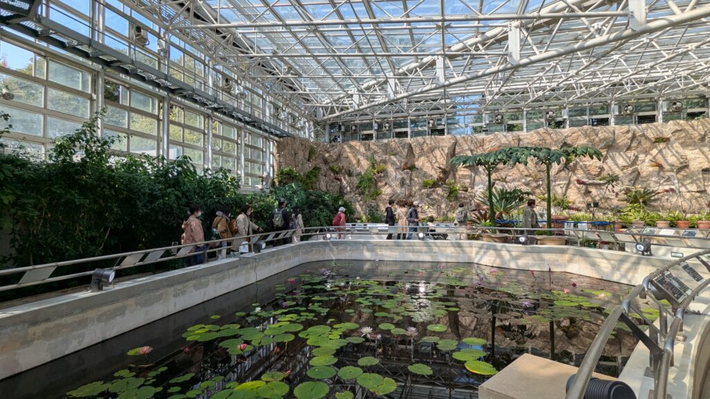スイレンが静かに浮かぶ池もあり、ただの観賞温室にとどまらず、自然環境そのものが再現された空間として非常に完成度が高い印象でした。