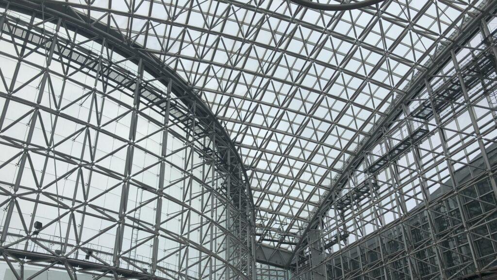 「駅を降りた人に傘を差し出すおもてなしの心」というコンセプトのもと、金沢を訪れた人々を幾何学模様のガラスの天井で迎えてくれます。
