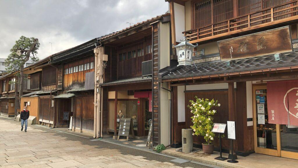 ホテルから徒歩10分程度で兼六園入り口周辺です。茶屋が立ち並んでいます。