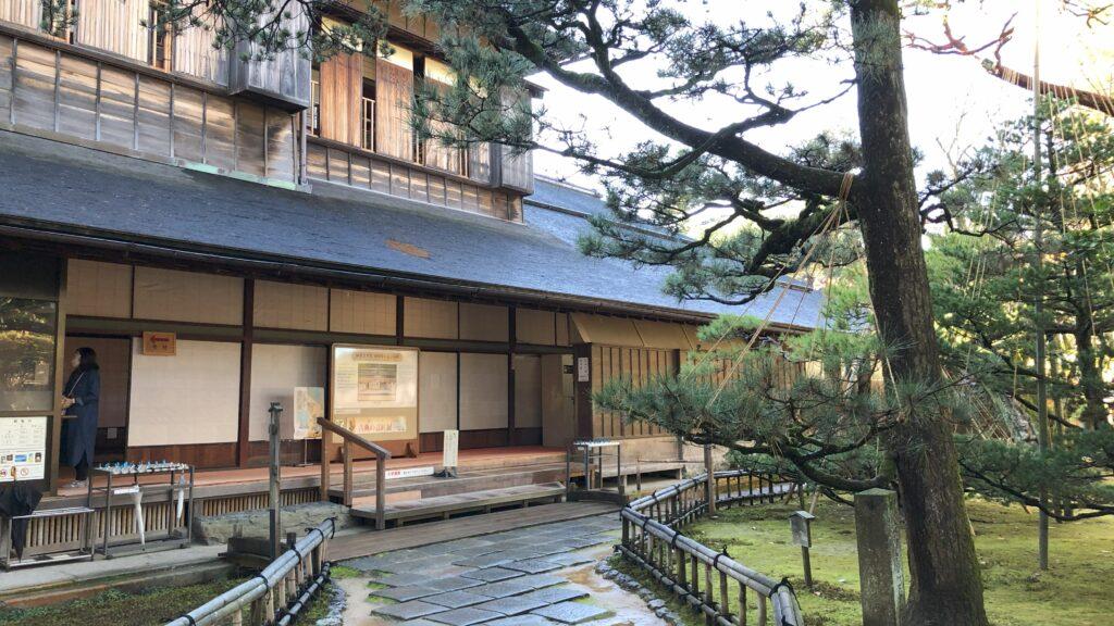 兼六園内に建てられているんだブ。 2階建ての建物で、2階は数寄屋風書院造、1階は書院様式となっていて、日本国内で唯一現存する大名正室の御殿なんだブ。