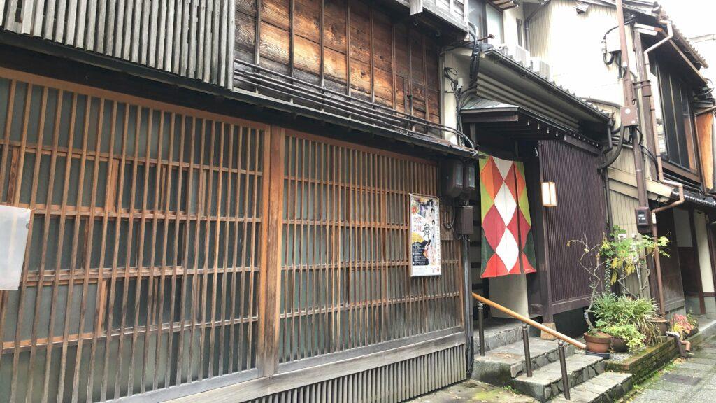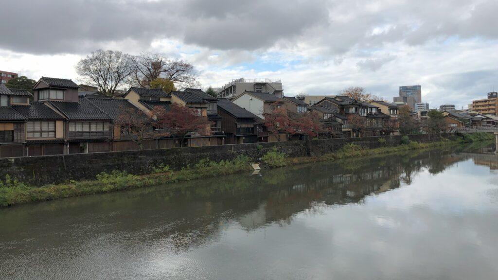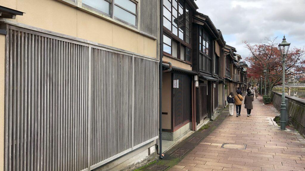 浅野川を渡ると川沿いにある「主計茶屋街」です。