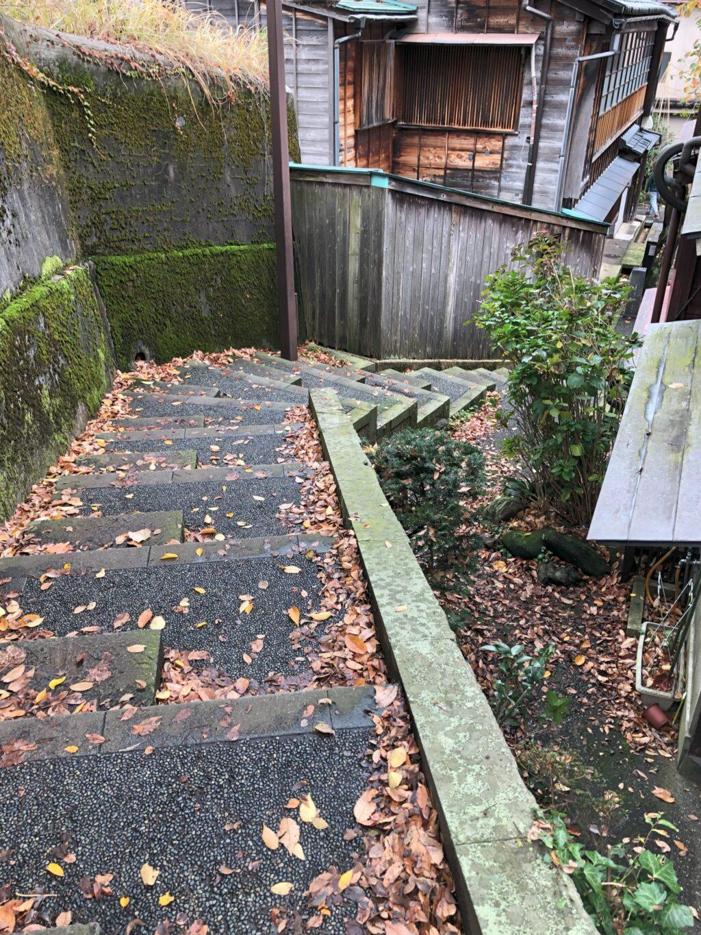 「暗がり坂」です。旦那衆が人目を避けて茶屋街に通うために使われてきた坂だとか。