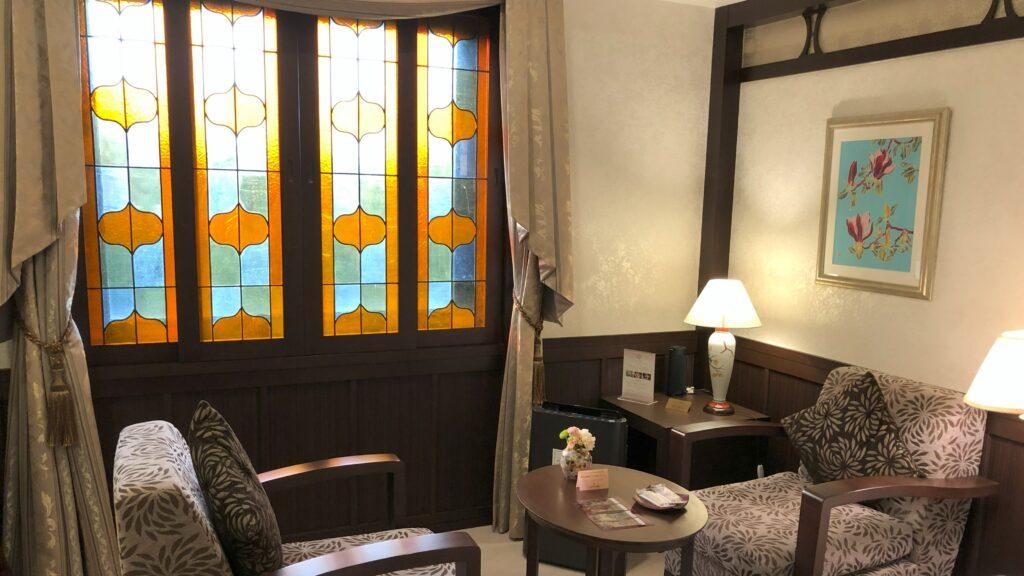 部屋を開けると、みごとな大正ロマンです。