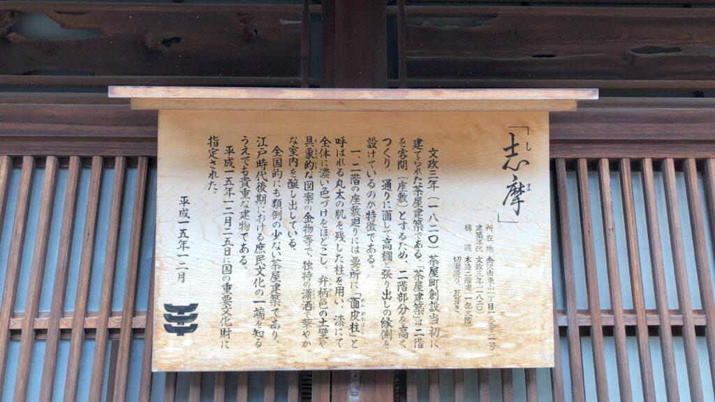 この茶屋街の並びに、国の重要文化財にも指定されている「志摩」があります。