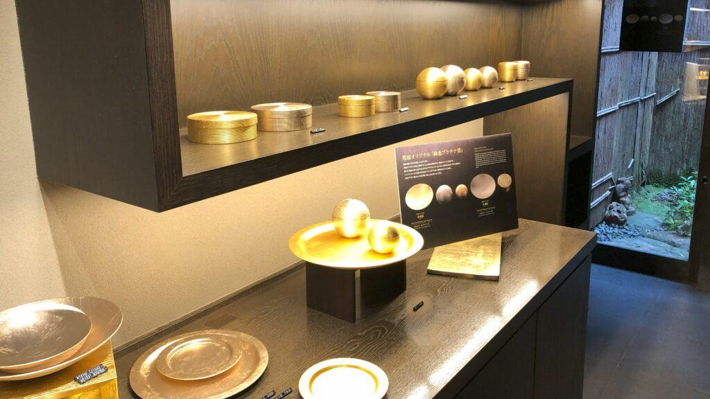 人ってなんでこんなにキラキラに惹かれるんですかね。食べ物からアクセサリー、食器など金箔を使った商品を多数取り扱ってましたよ。
