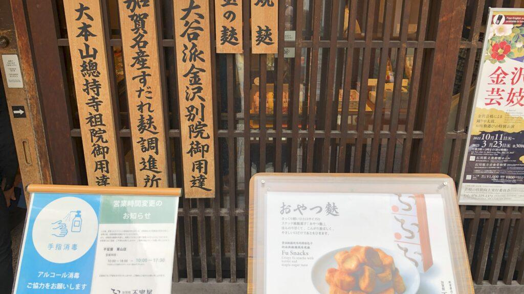 この旅ではまったお麩のお店「加賀麩不室屋 東山店」です。