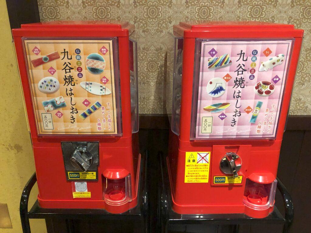 金沢伝統工芸の九谷焼を使った調度品が飾られていました。九谷焼のロディや、九谷焼を使ったガチャガチャまでありました!