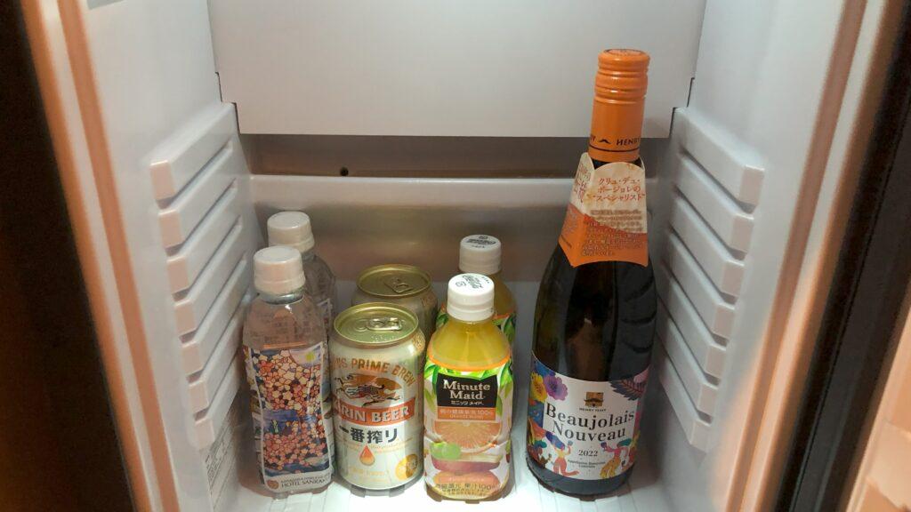 コーヒーメーカーはUCCのドリップポッドが用意されており、美味しく頂きました。冷蔵庫の中の飲み物はすべて無料で、加賀棒茶のペットボトルもサイドポケットにあり、バランスよく配慮されていました。