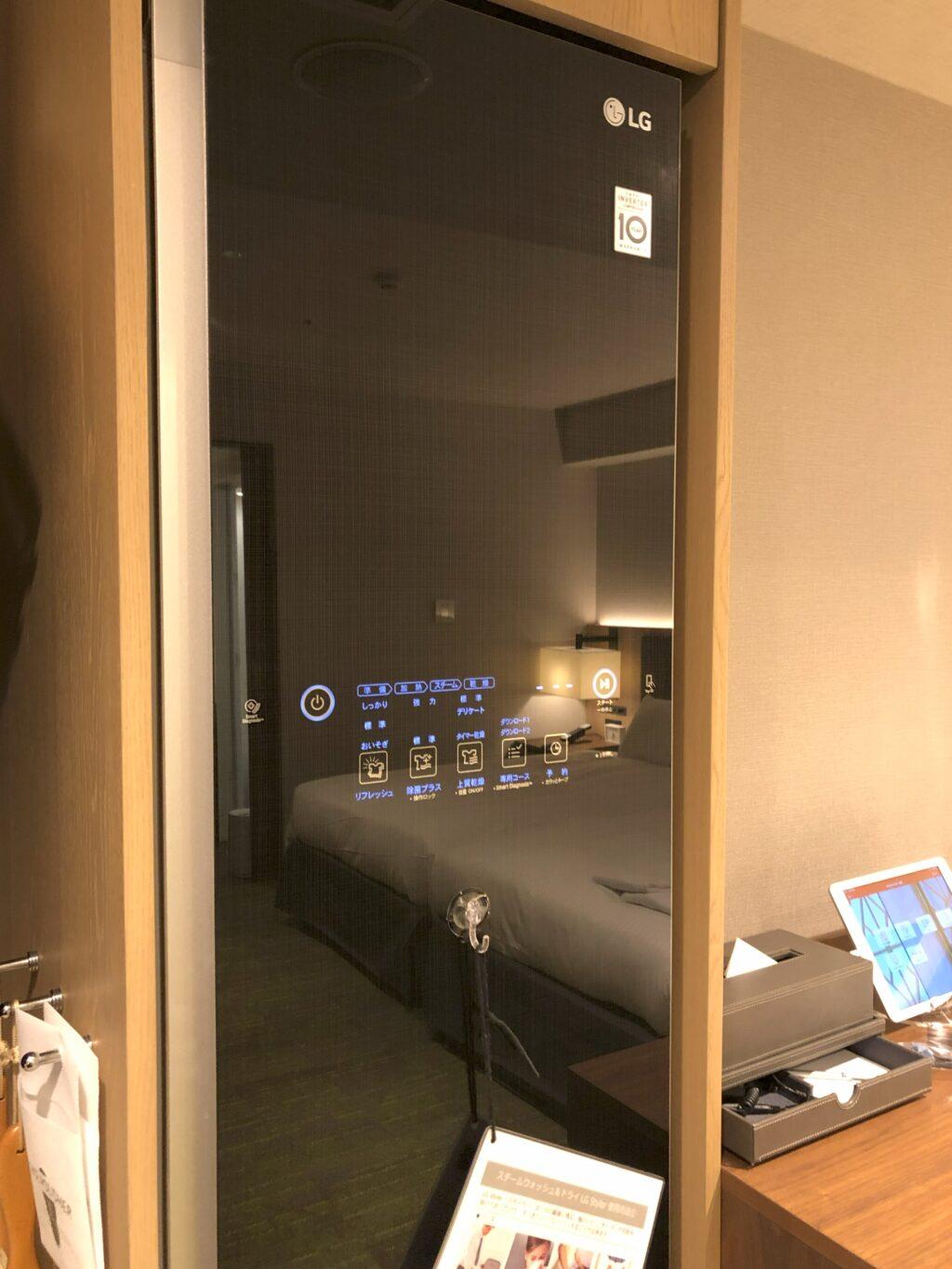 客室には備品が充実していました。まず目に入ったのは、LGスタイラーです!ホテルでこの設備を見たのは初めてでした。