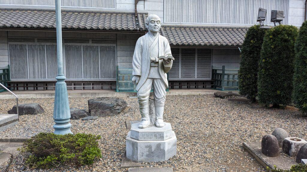 資料館の裏の駐車場にあった、伊能忠敬の像です。