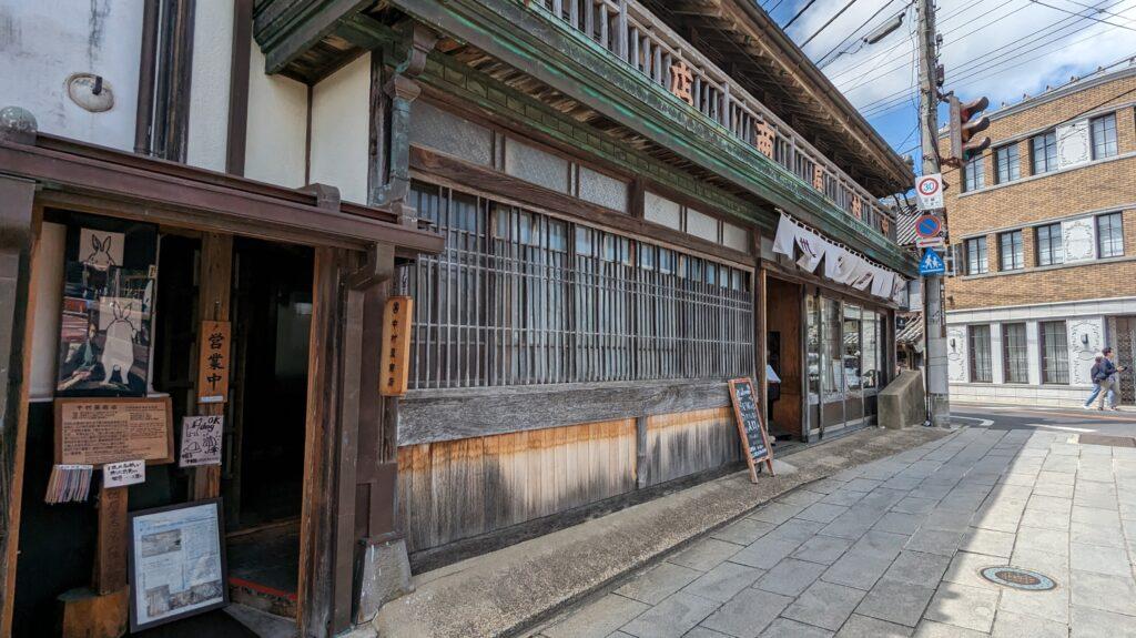 佃煮専門店。醤油屋として江戸時代に創業し、現在は本醸造醤油をベースとした無添加のタレを使用して作った佃煮を製造販売している。串刺しにして軽く焼いたわかさぎを煮上げた「いかだ焼」や、柔らかい食感の「やき蛤」などが人気商品だ。店舗は天保三年に建てられ県指定有形文化財。趣のあるお店も必見。