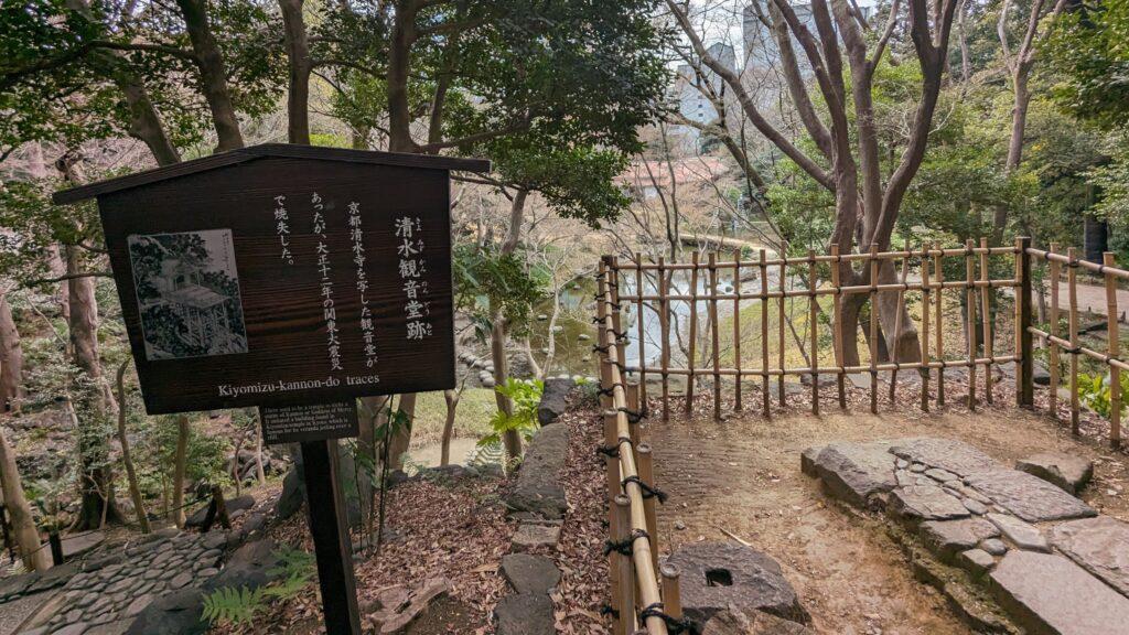 京都の清水寺を模した観音堂があったということですが、今は基礎石のようなものが残る家となっています。園内の西側は京都を模したエリアとなっています。