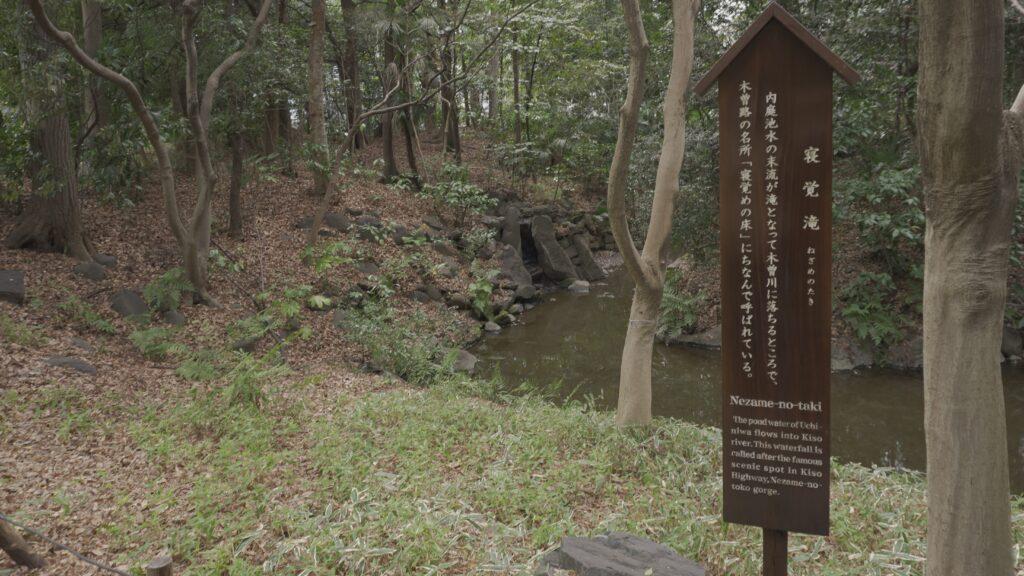園内東側の内庭の近くにある水路で、内庭の池水が「木曽川」に落ち込む場所です。