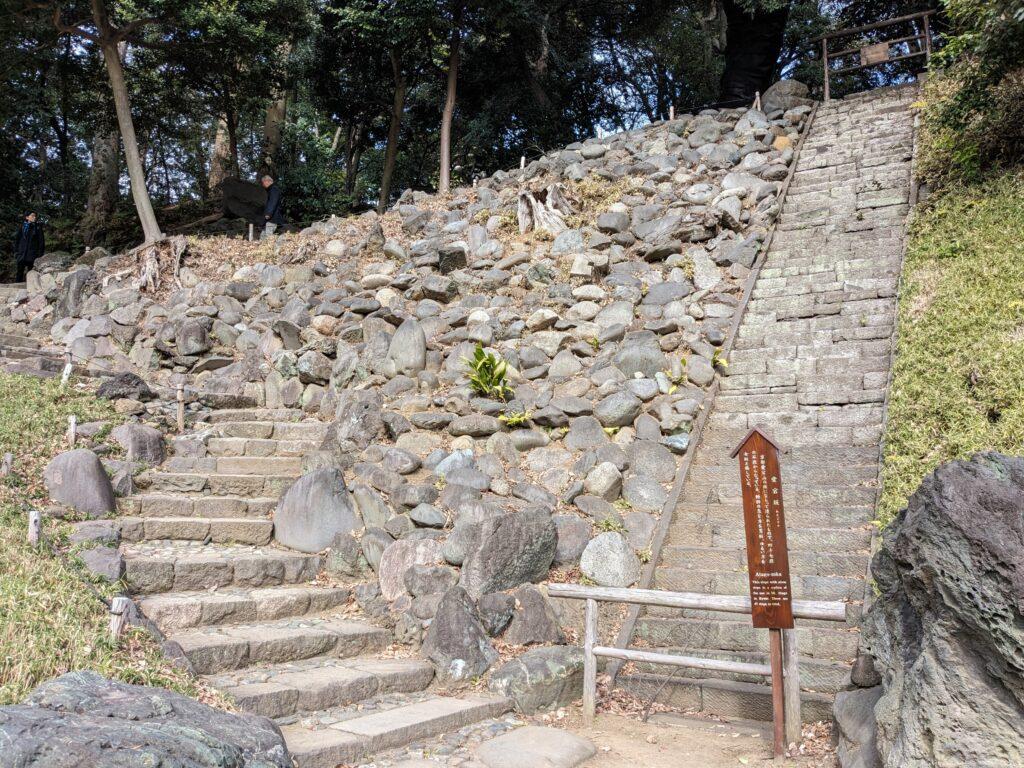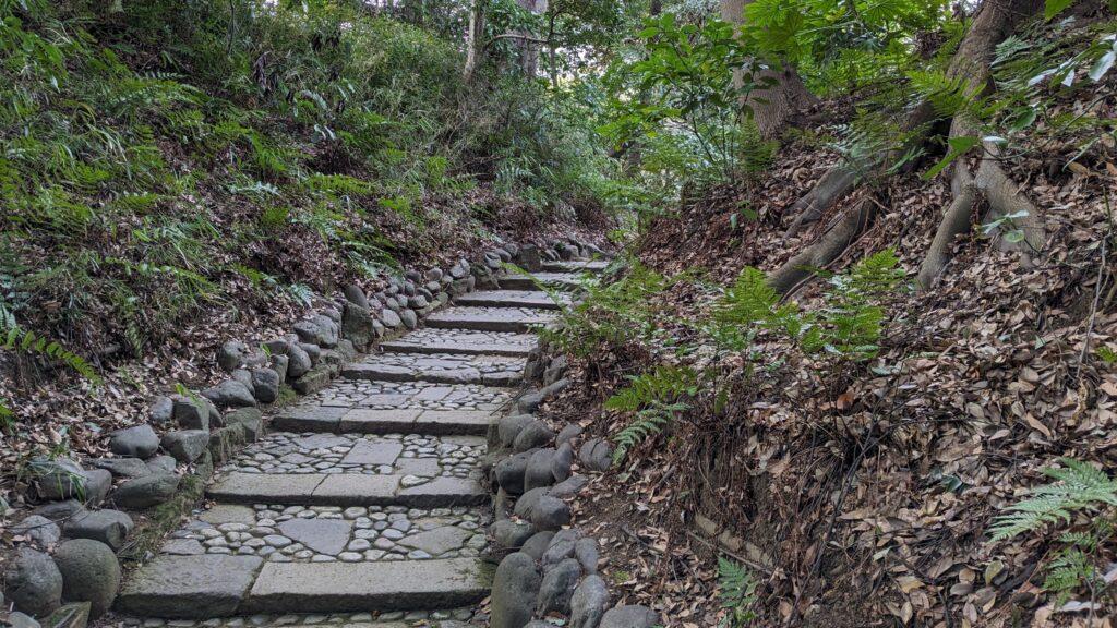 京都の愛宕山に由来があるそうです。実際の上り下りは危険そうですが、綺麗な石組ですね。