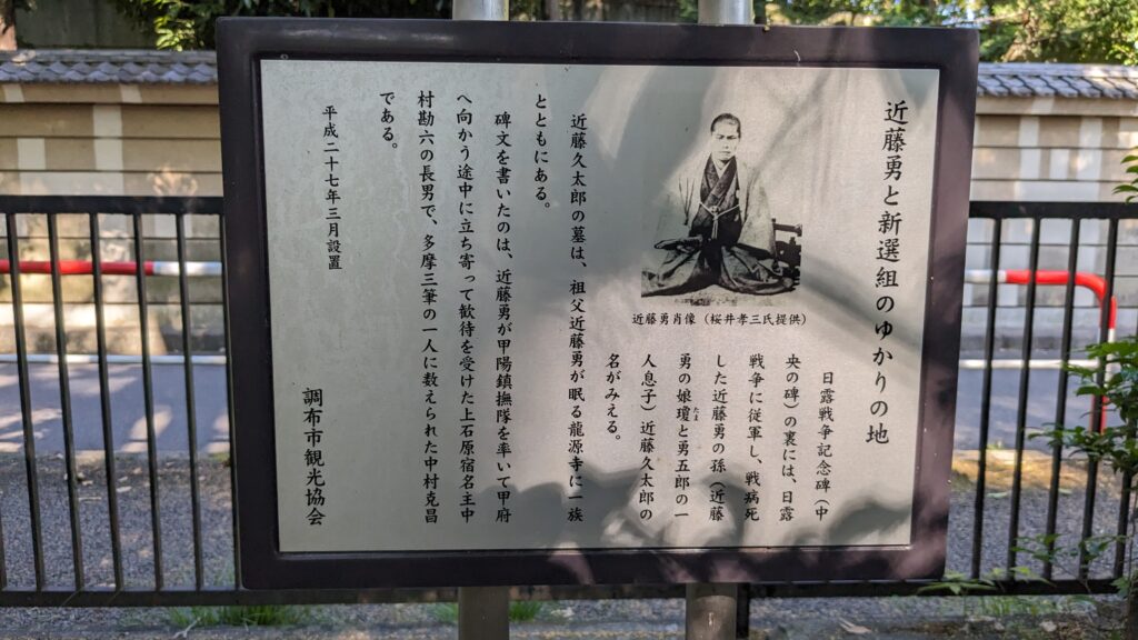 近傍にある「日露戦争記念碑」には近藤勇の孫・近藤久太郎の名が載っています。