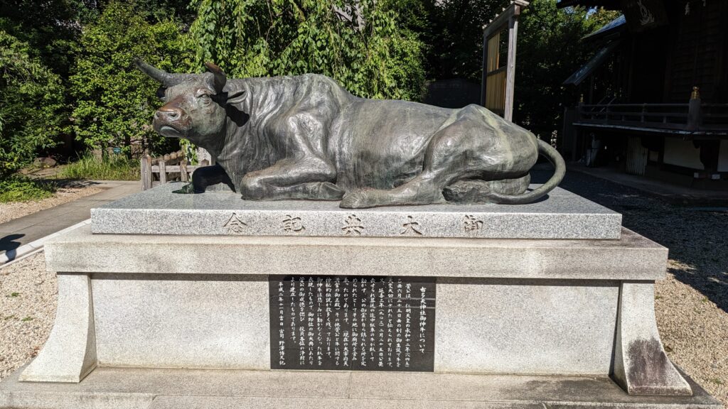 同じく菅原道真公を祀る「谷保天満宮」にも御神牛がいました。