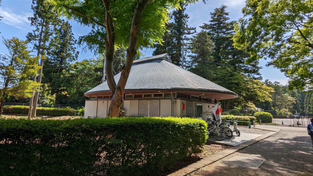 正門前には「多摩御陵警備派出所」があります。特徴的な形をしていて、かわいらしいですね。