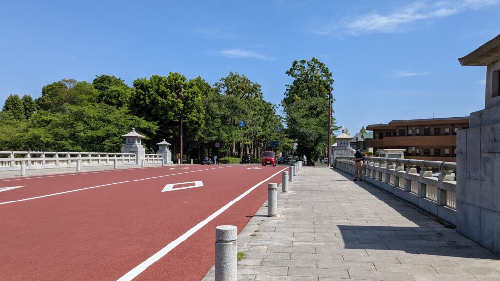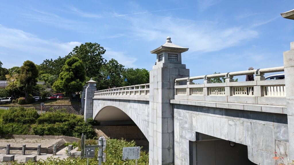 御陵参道の橋で、威厳のある形式と周辺の自然との調和を考慮したデザインが施されているのが特徴だブ。 橋の長さは53.3メートル、幅は21.4メートルだブ。