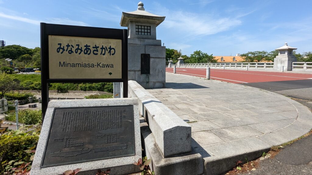 多摩御陵の正門から甲州街道に向かって歩き出すと、まず「南浅川」に架かる南浅川橋を渡ります。