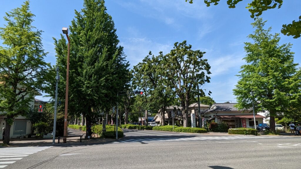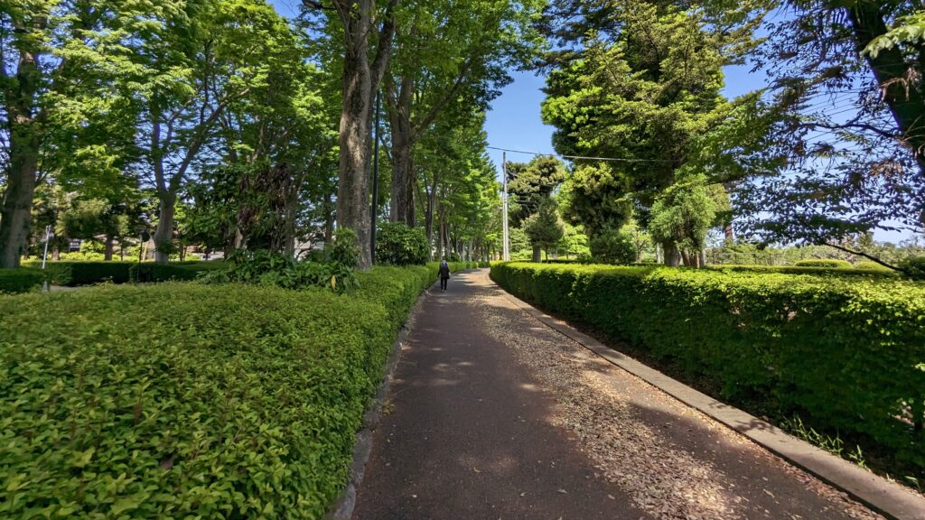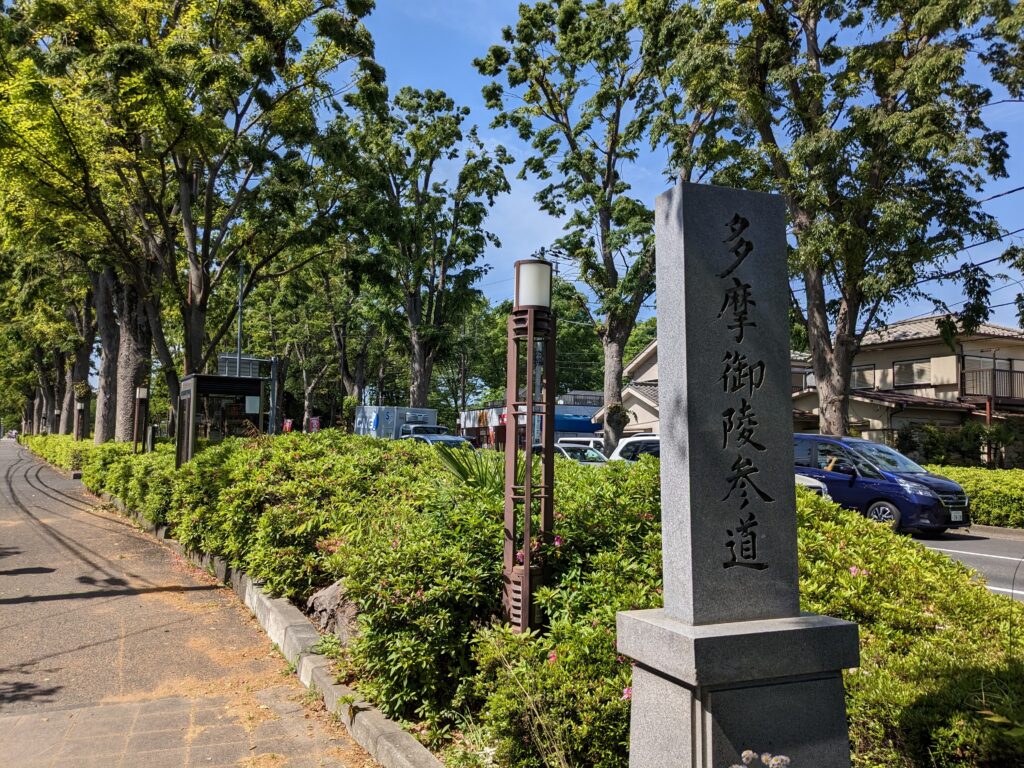 主要な目的地だけでなく、その周辺に残る歴史の痕跡を探すことも楽しみの一つです。御陵を参拝し終えた私は、帰路は来た道を戻らず、甲州街道へ向けて参道をまっすぐ歩くことにしました。