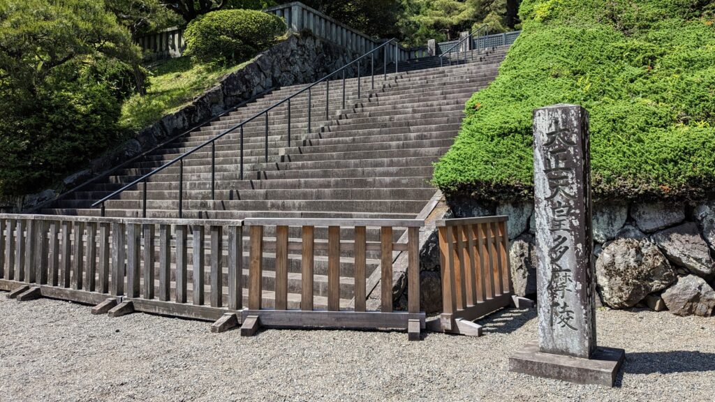 続いて、大正天皇陵のすぐ近くにあるのが、貞明皇后 多摩東陵です。こちらも多摩陵と同様に「上円下方墳」の形式をとっています。