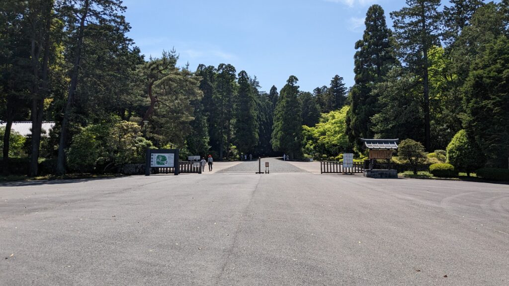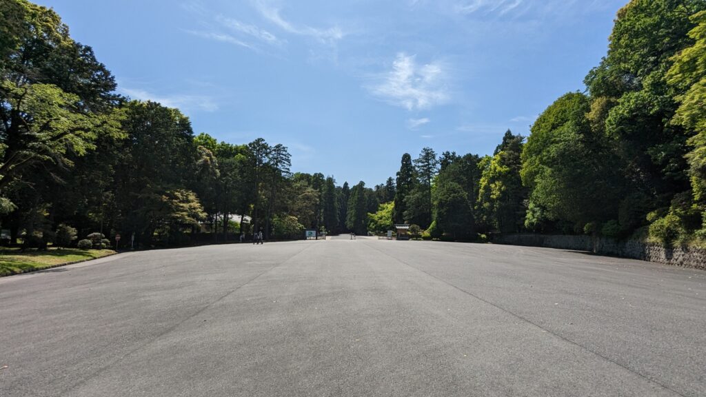 武蔵陵墓地の正門から開けた空間が広がっています。スケールが大きいです。