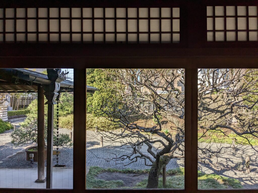 玄関の間から外を見ると、一段低くなっている板敷きの「式台」と言われる間があります。
