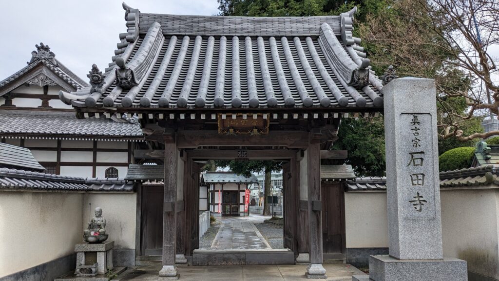 石田寺の土方歳三の墓は、境内の東側にあります。墓石は、高さ約1メートル、幅約60センチメートルの黒御影石で、戒名「歳進院殿誠山義豊大居士」が刻まれています。墓石の周りには、花や線香が供えられており、多くの参拝客が訪れています。