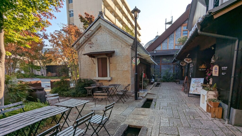 石畳と水路があり、とてもおしゃれなショッピングエリアです。雰囲気があって、散策が楽しい場所です。エリア自体は広くないので、1時間もあれば、ゆっくりとお店を一通り見て回れると思います。