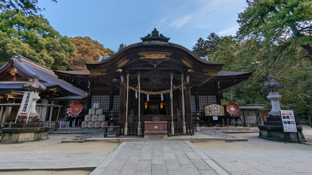 ただし、神社までは緩やかながらも長い上り坂が続きます。私たちはこの後の街道歩き本番に備えて体力を温存するため、今回は甲府駅前のカーシェアを利用しました。バスも運行していますが、土日祝の早朝は便数が限られるので注意が必要です。