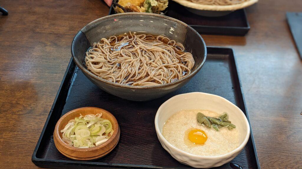 メニューは「とろろそば」「天婦羅そば」をはじめ、多彩な選択肢が揃っています。今回私たちが注文した「冷やしとろろそば」と「天婦羅せいろ」はどちらも絶品でした。