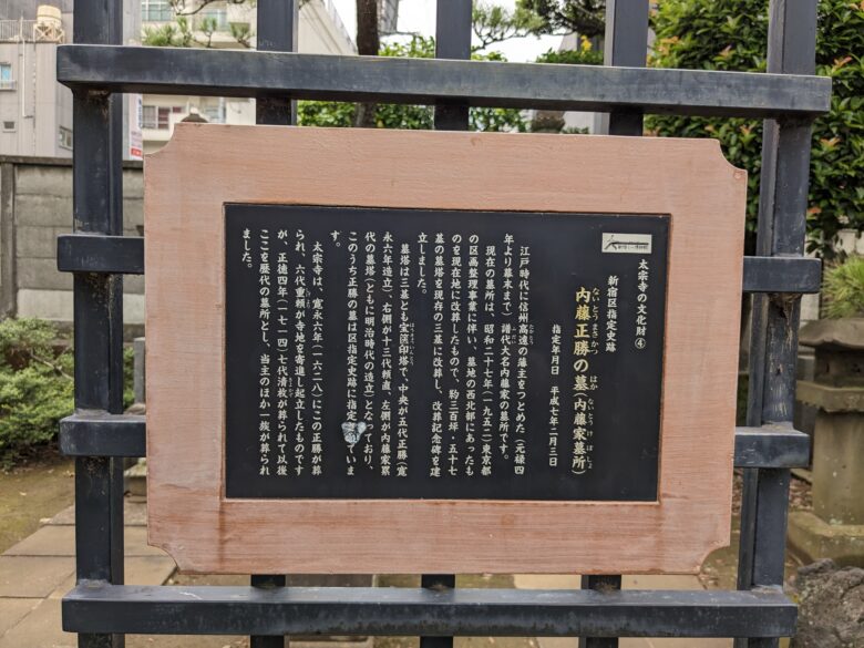 甲州街道の宿場町としての新宿を開発した内藤正勝のお墓です。