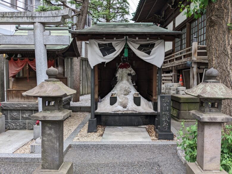 地蔵堂には「塩かけ地蔵尊」が鎮座しています。遠目では白い塊が何かわかりませんでした。