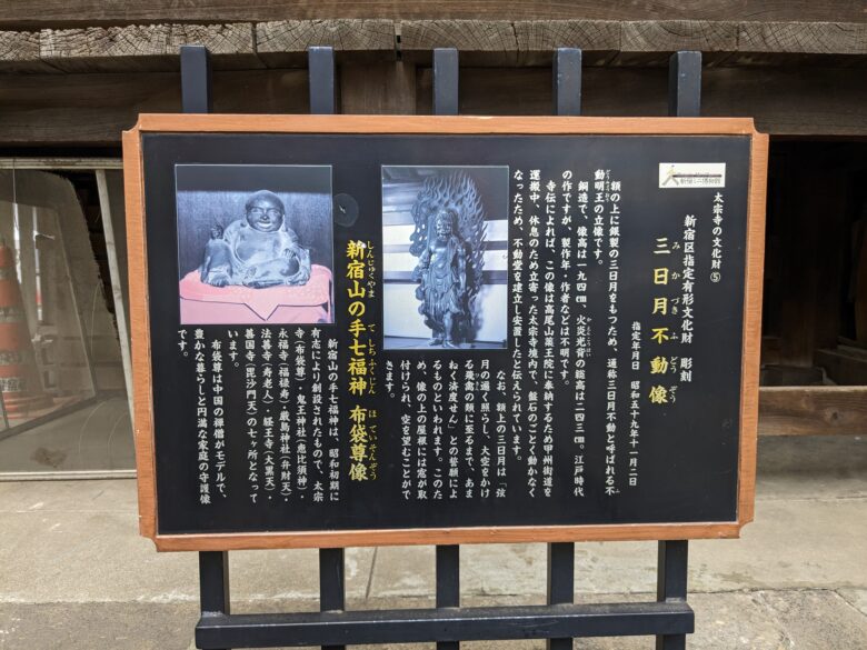 堂内には「三日月不動像(新宿区文化財)」と「新宿山の手七福神 布袋尊像」が祀られています。
