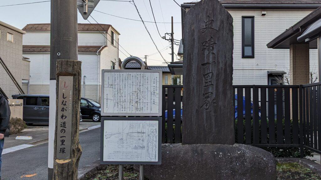 左にある標柱に記された「しながわ道」は、東海道から府中にあった武蔵国府に通じる脇街道で、甲州街道の一部だったようです。