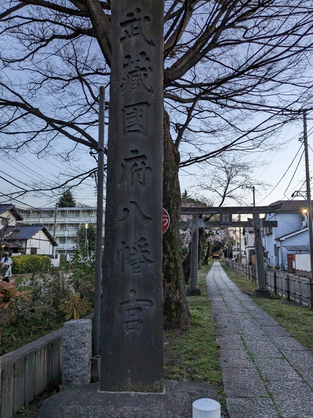 大國魂神社の境外末社で奈良時代の聖武天皇の時代にできたんだって。主祭神は応神天皇なんだブ。境内には、昔の甲州街道に向かって立つ一の鳥居や、大國魂神社から移された神門なんかもあるんだブ。