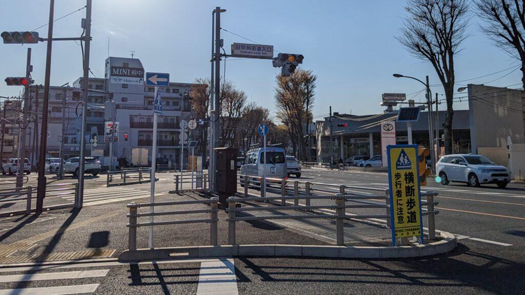 旧甲州街道は20号と離れ、この交差点を斜め左に入って行きます。