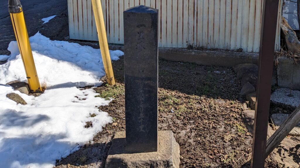 コンテナの裏の道に行くとひっそりとありました。「茅野一里塚」です。196kmです。
