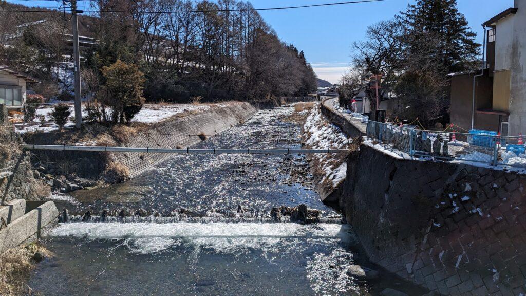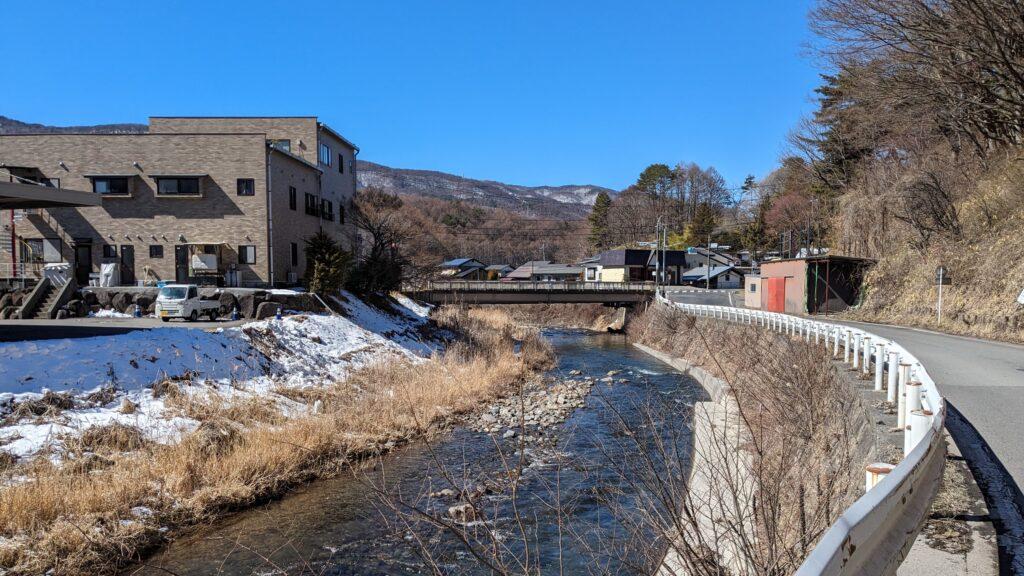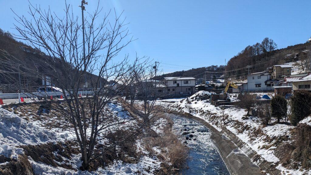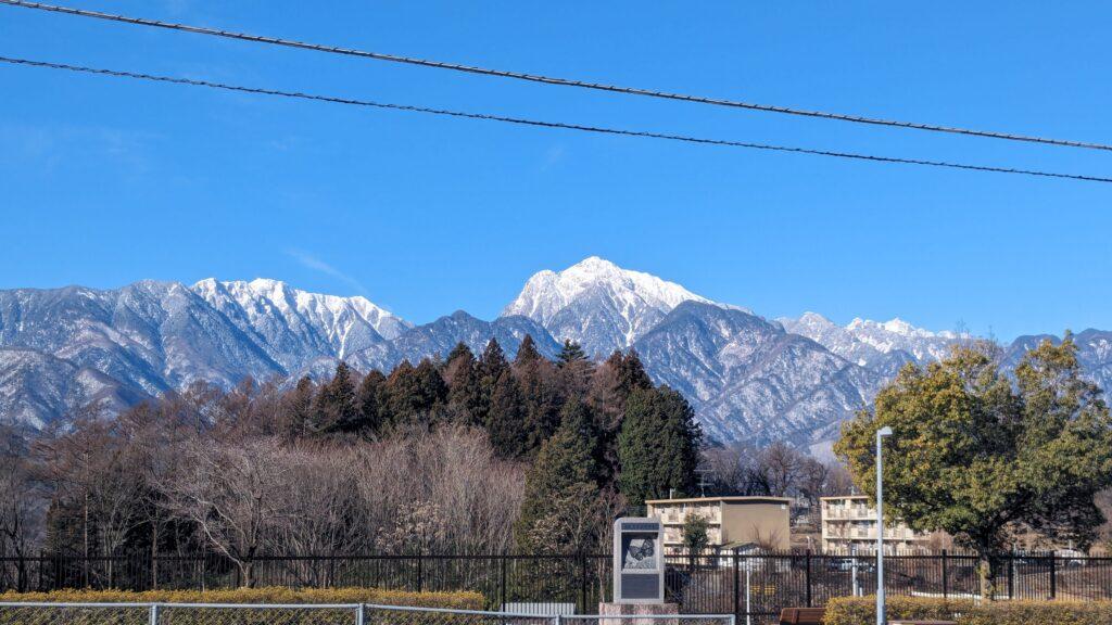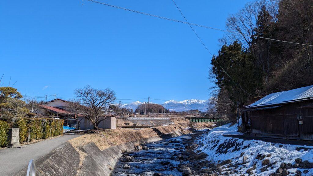 宮川沿いを進むと、遠くには八ヶ岳連峰の美しい姿が見えてきました。