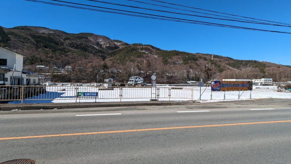 国道20号沿いを進んでいくと、視界に飛び込んできたのは「寒天の里」の看板。茅野市では古くから寒天産業が盛んなんですね。