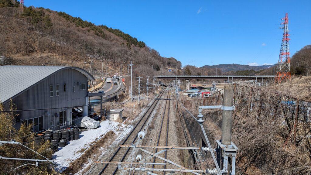跨線橋を渡り、中央線沿いを進んで行きます。