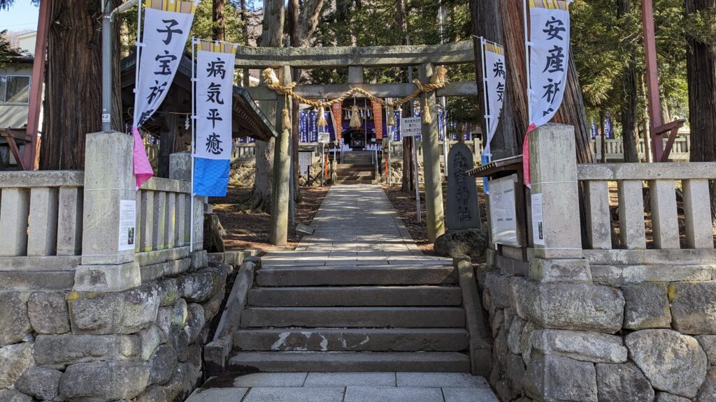 諏訪大社上社の末社なんだブ。建御名方神が諏訪大社に祀られる以前からこの地で信仰されていた神とされるんだブ。