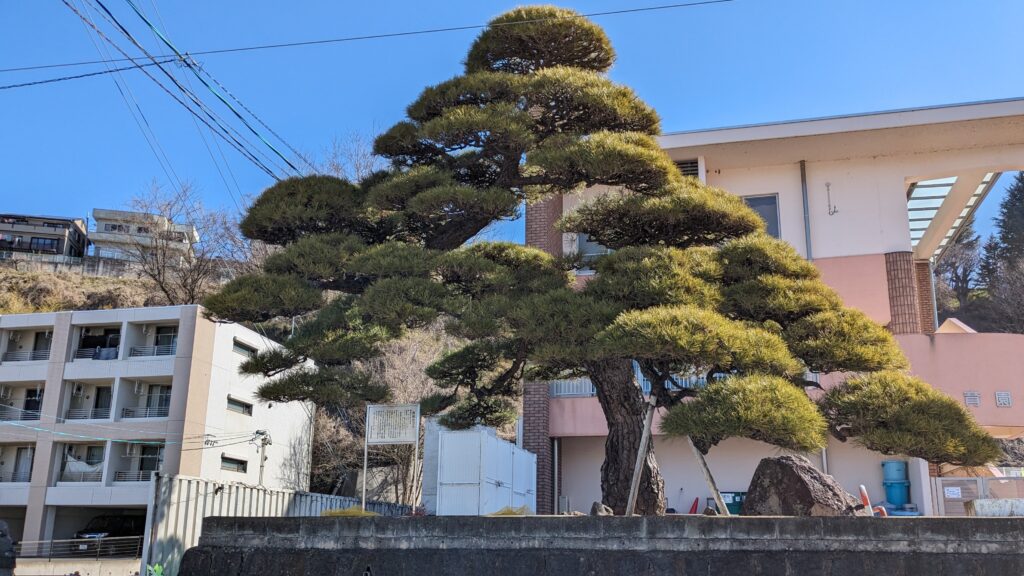 この道に入ると、まず目につくのが保育園の前にある立派な松の木、諏訪市の天然記念物「吉田のマツ」!樹齢推定約300年という市内最年長樹で、高島藩士が大阪城守備の任務から持ち帰った黒松だといわれています。歴史の詰まった一本ですね。