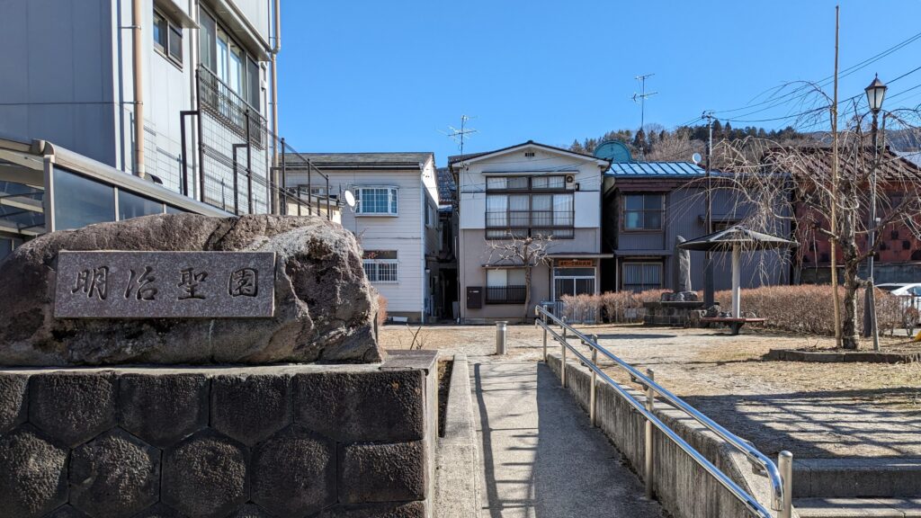 線路沿いには「明治聖園児童遊園・高島城柳口御役所跡」があります。