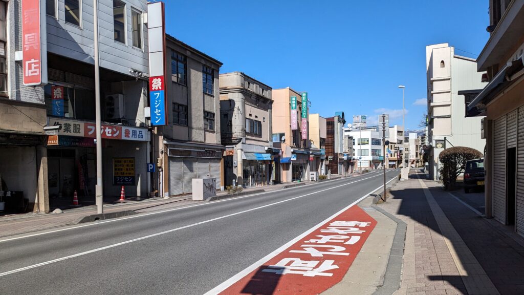 20号に戻り上諏訪駅方面に向かいます。レトロな町並みが残っています。