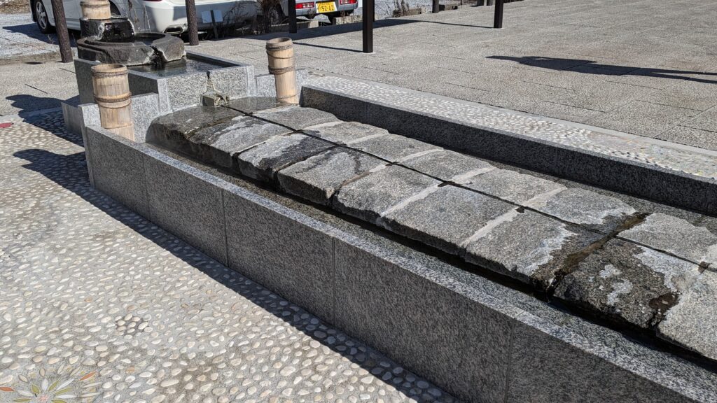 「諏訪五蔵」を過ぎ、300mほど歩いた駐車場の前に、旅人の足を思わず止めるスポットがありました。それが「精進湯跡お手湯」です。さすが温泉地として有名な上諏訪!