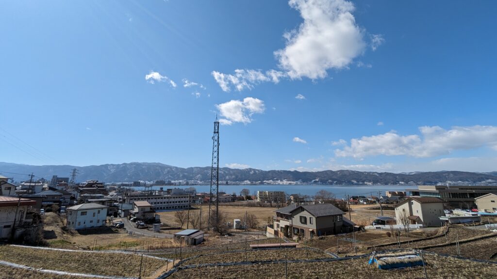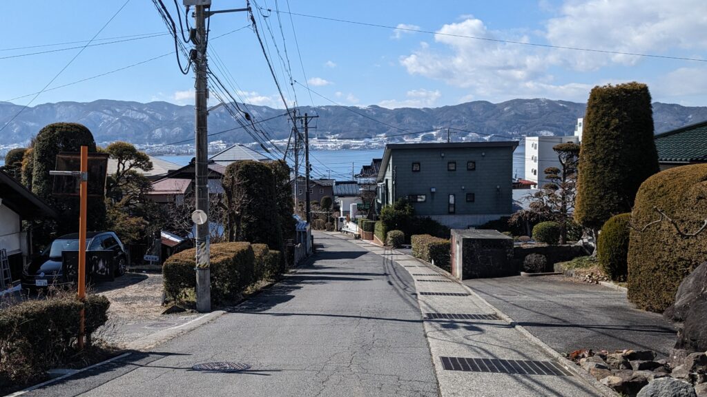 山沿いの道は緩やかなアップダウンを繰り返し、民家の間からはところどころきらめく諏訪湖が覗かせます。この景色が、疲れた体に活力を与えてくれました。