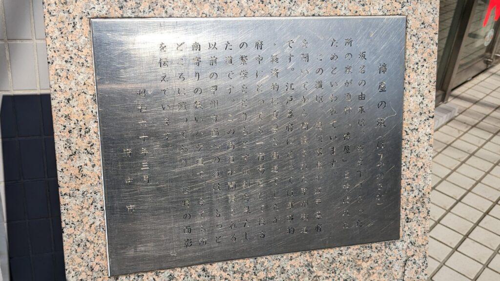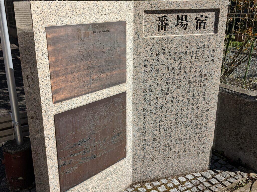 少し歩いたところに、「番場宿」の石碑が静かに佇んでいます。石碑には、この地名が「馬場の転訛」や「番所があったから」という説が書かれていました。