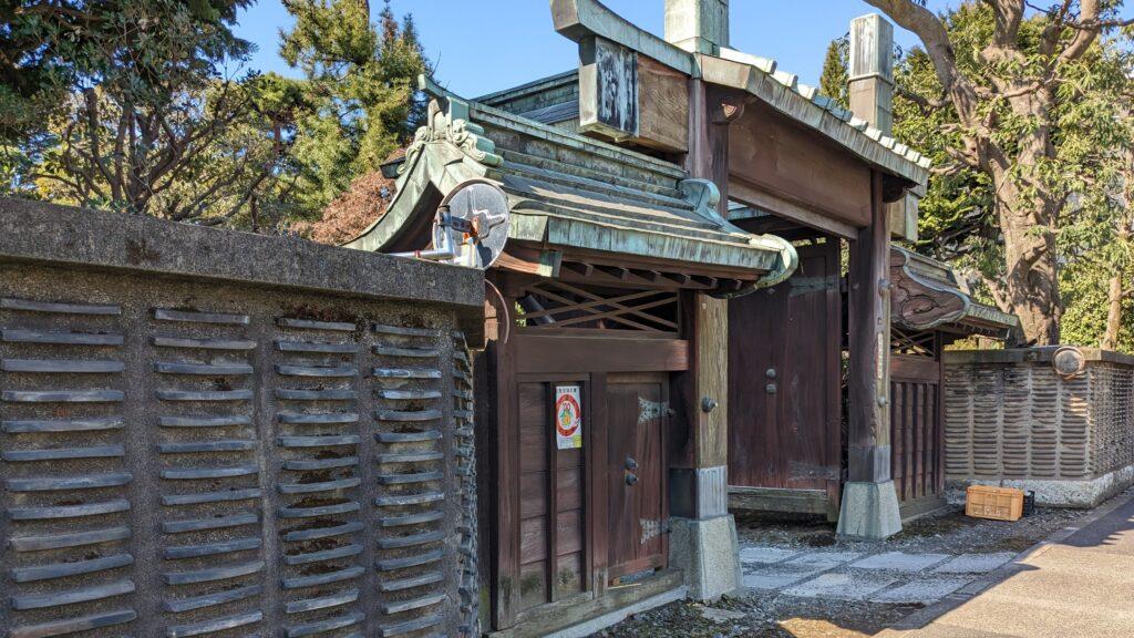 京王線分倍河原駅近くの踏切を横断し、しばらく歩くと、立派な石塀と威厳のある門構えが見えてきます。